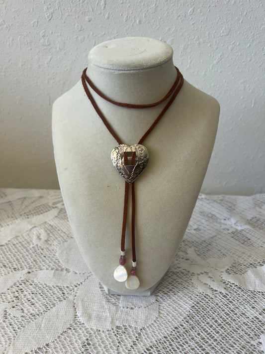 Brown + Silver Heart Bolo Tie