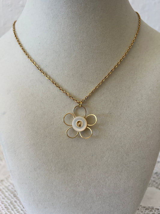 Gold Flower Button Necklace