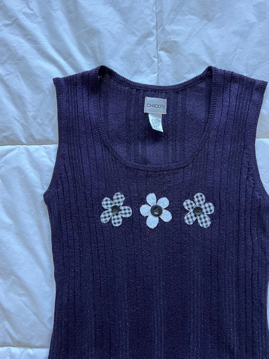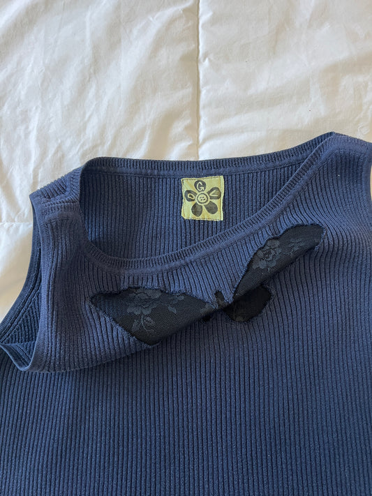 Upcycled Lace Butterfly Blue Tank (M/L)