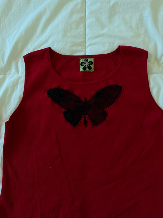 Upcycled Lace Butterfly Red Tank (L/XL)