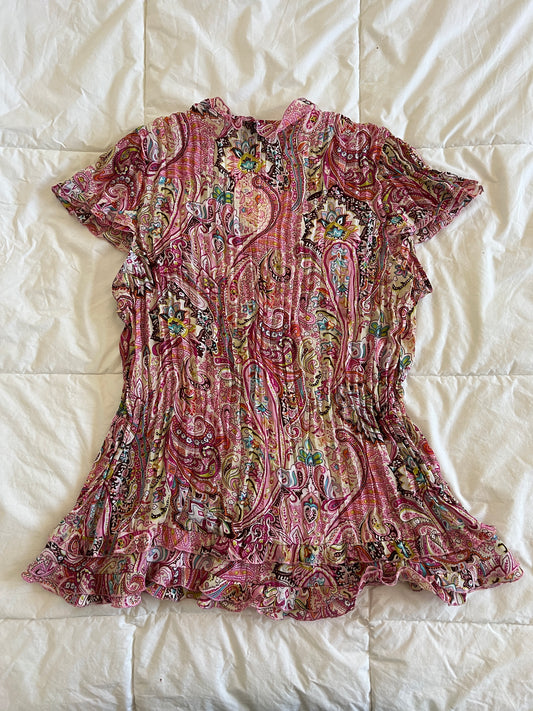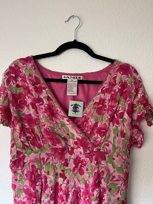 y2k Brown & Pink Floral Blouse (3/4xl)